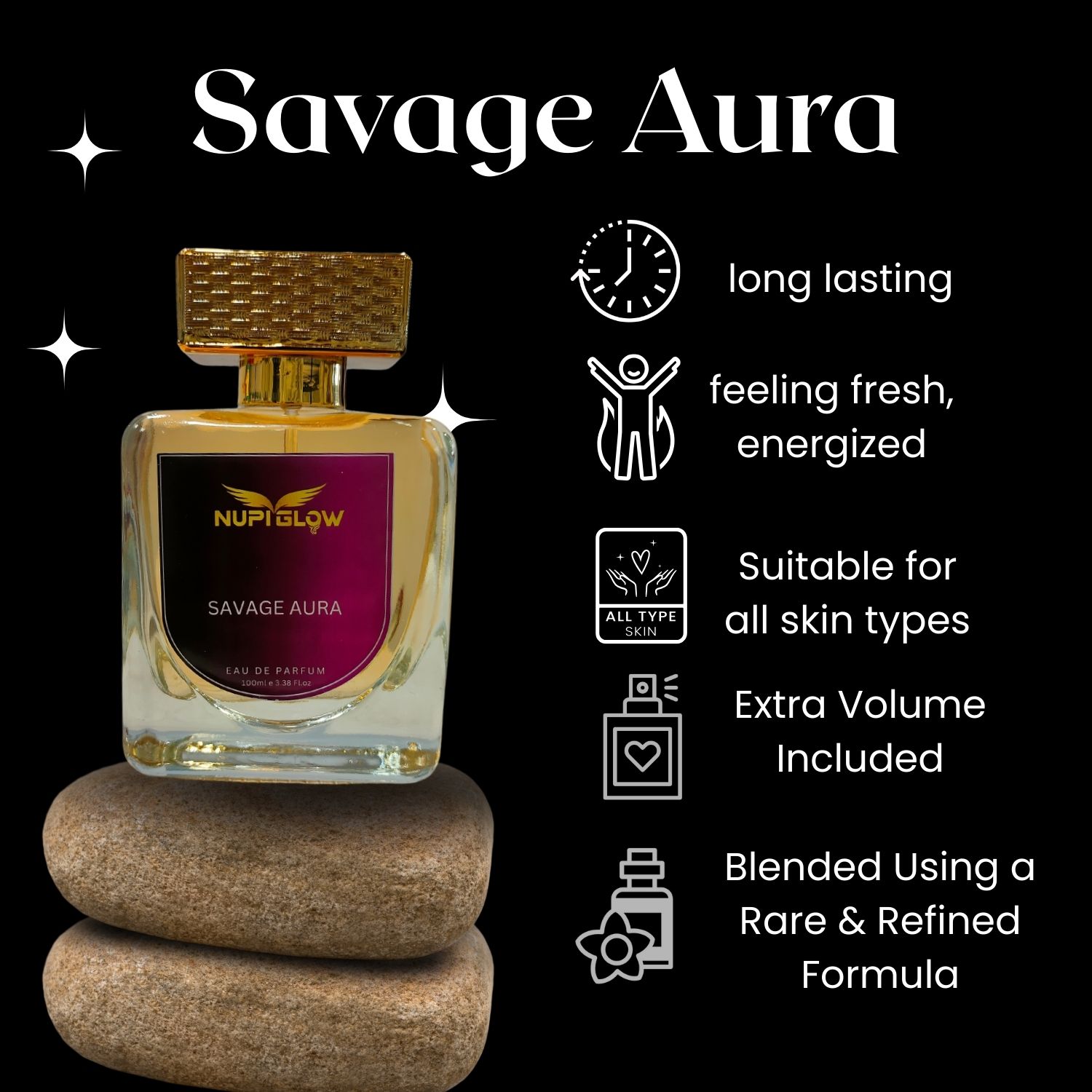 Unleash raw confidence with Savage Aura, a bold 100ml men’s fragrance infused with spicy woods and fresh undertones. Intense, masculine, and unforgettable—your aura, redefined.